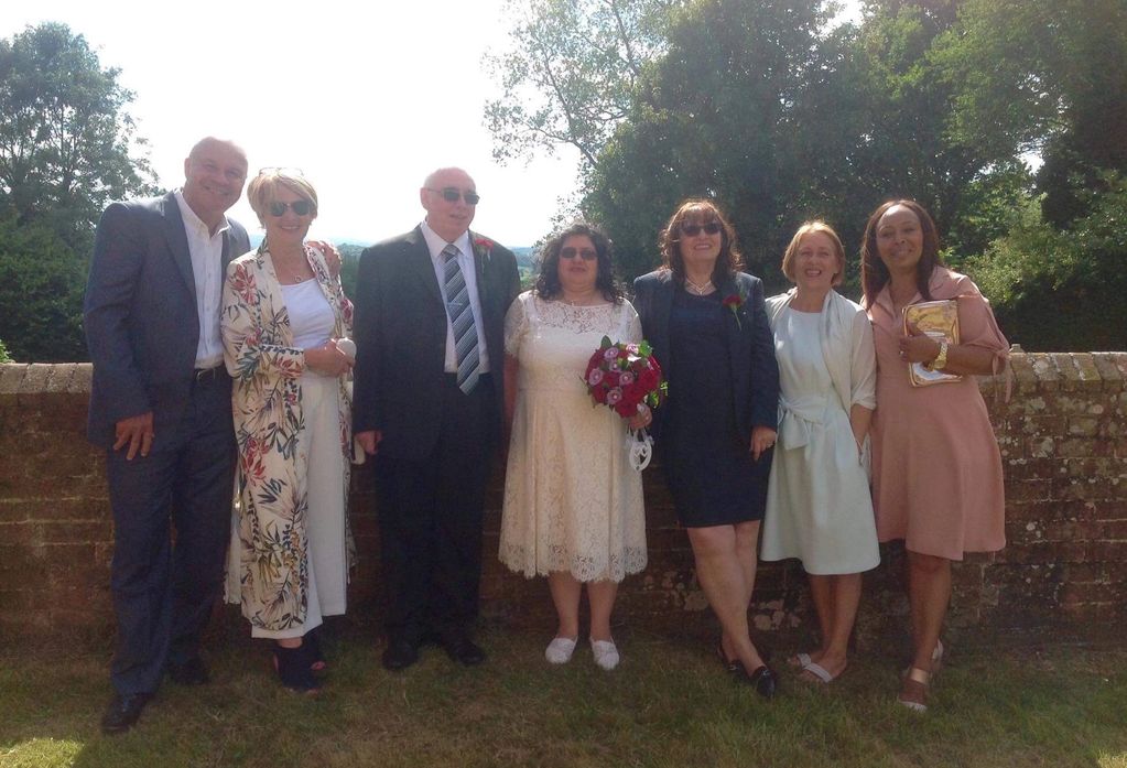 Jackie’s wedding to Greg Findlay in 2018 (Jackie in the middle and Lorraine second from the right)